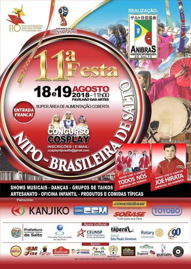Tradicional Festa Nipo- Brasileira de Salto. O evento terá uma extensa programação artística para o público com shows musicais, danças, grupos de taikos, exposições, artesanato, oficina infantil, além de produtos e comidas típicas.