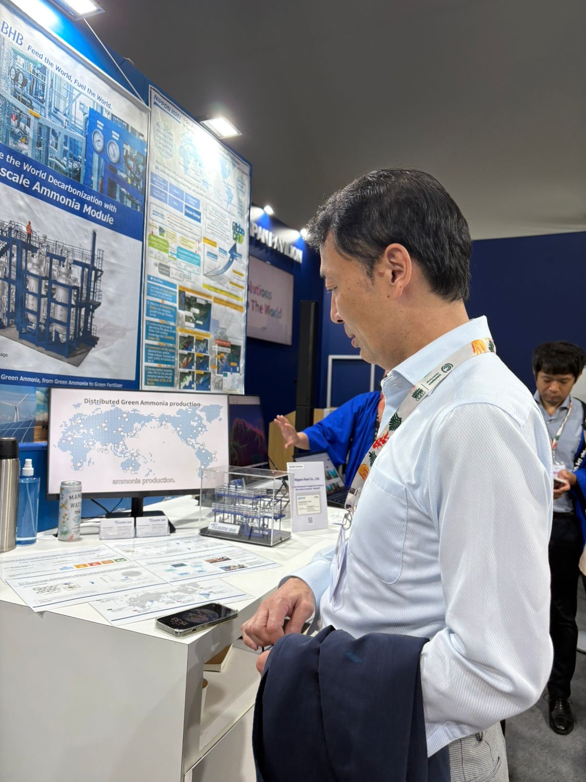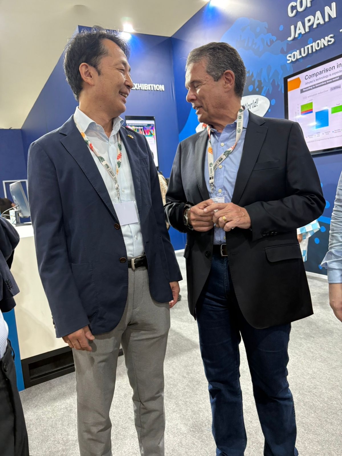 同日午後、COP会場内の日本パビリオンの企業展示を視察し、夕方には同パビリオンを訪れたパウラ・ブラジル漁業・養殖大臣に日本企業の取り組みを紹介しました。
