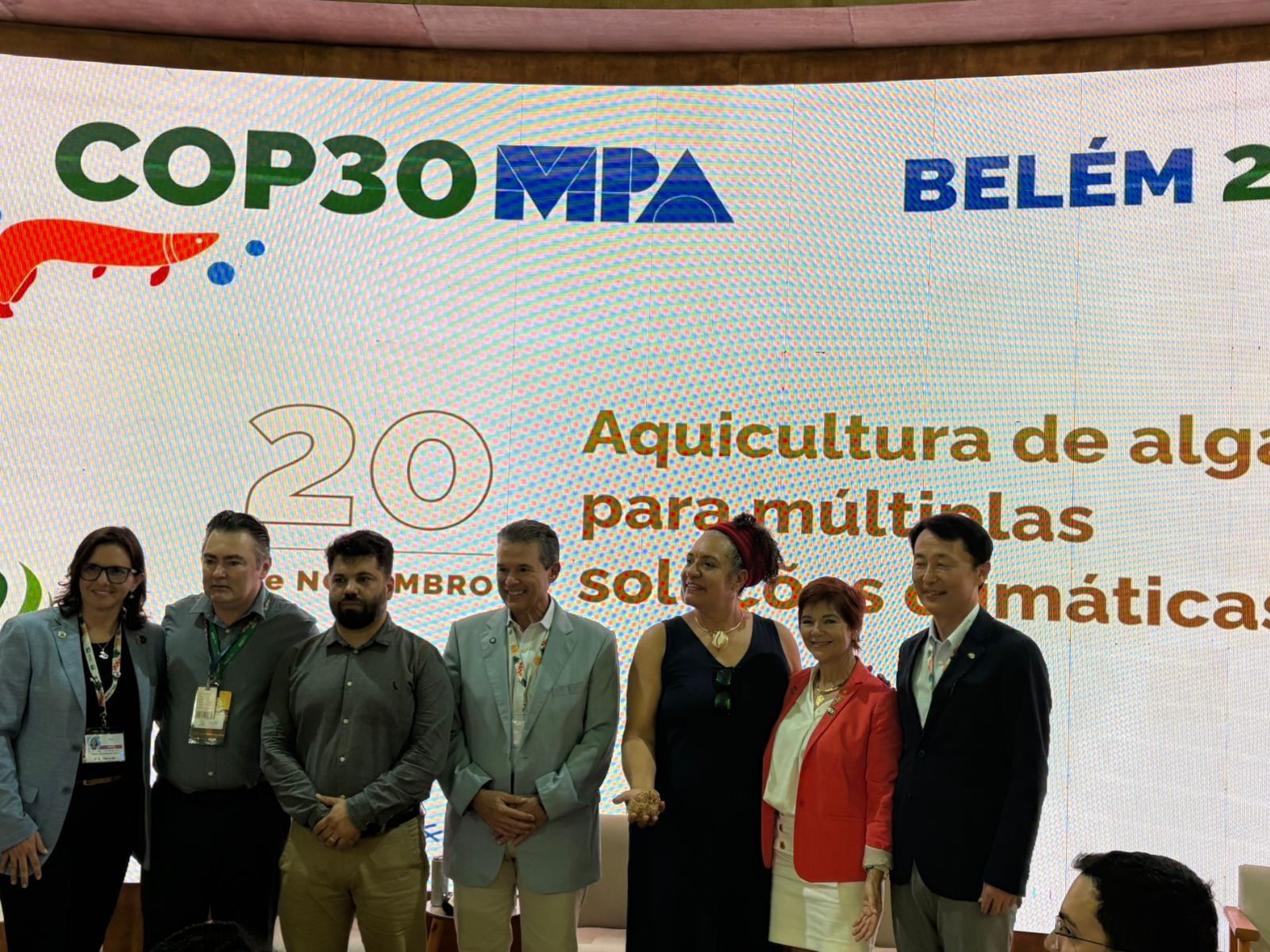 20日午前、COP会場内でブラジル漁業・養殖省主催の藻類に関するセミナーに登壇し、日本における藻類の歴史的・文化的重要性を説明しつつ、食料安全保障や気候変動対策への活用可能性として日本企業の取り組みを紹介しました。