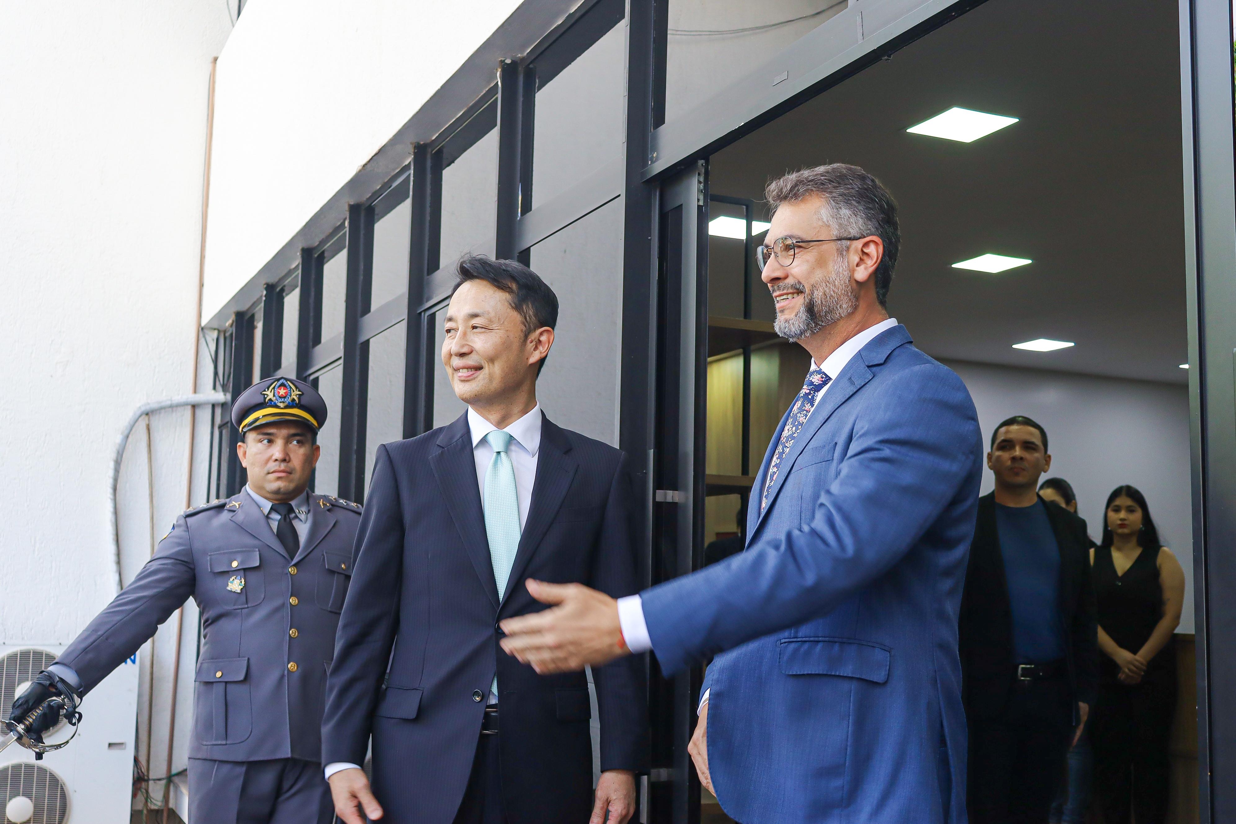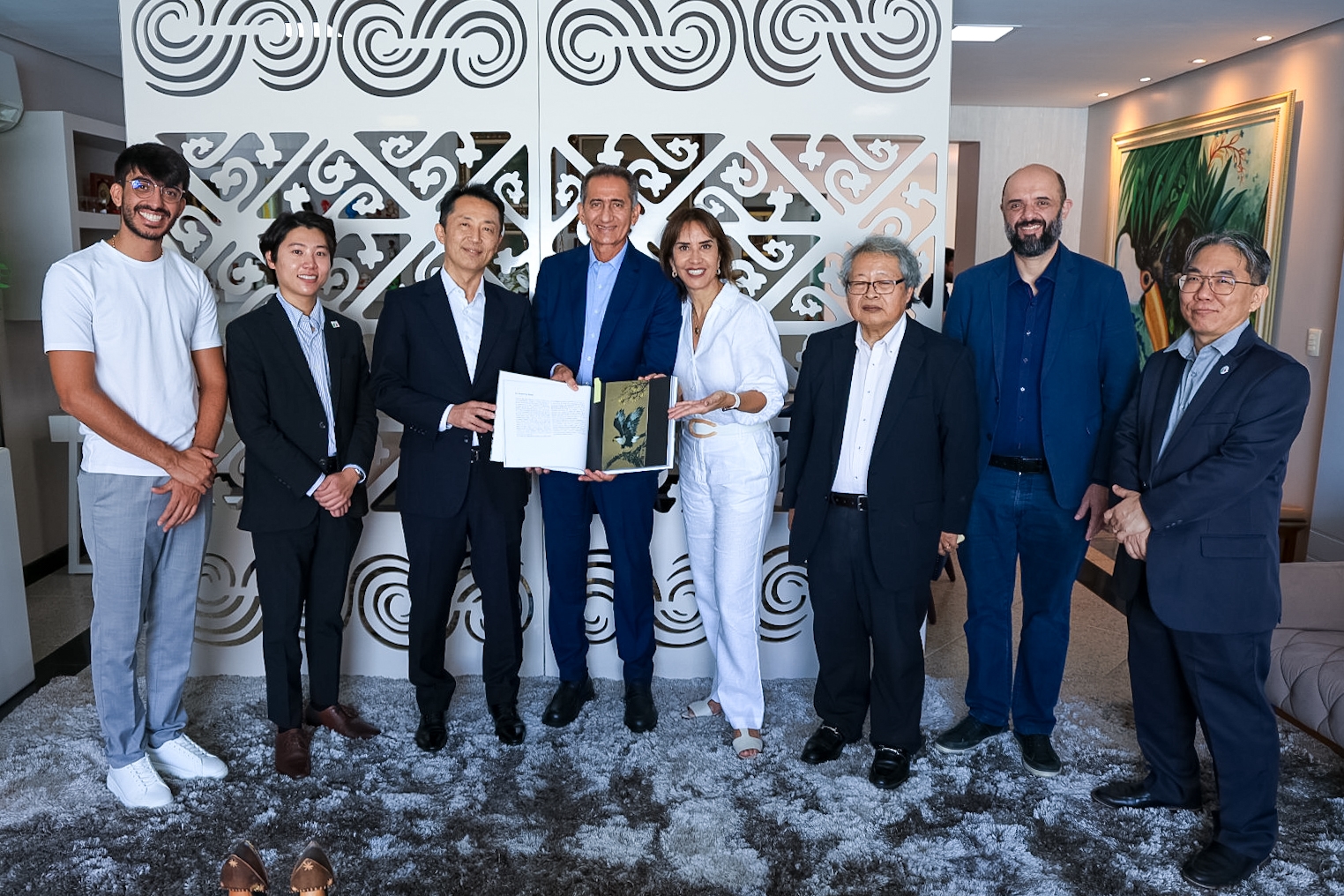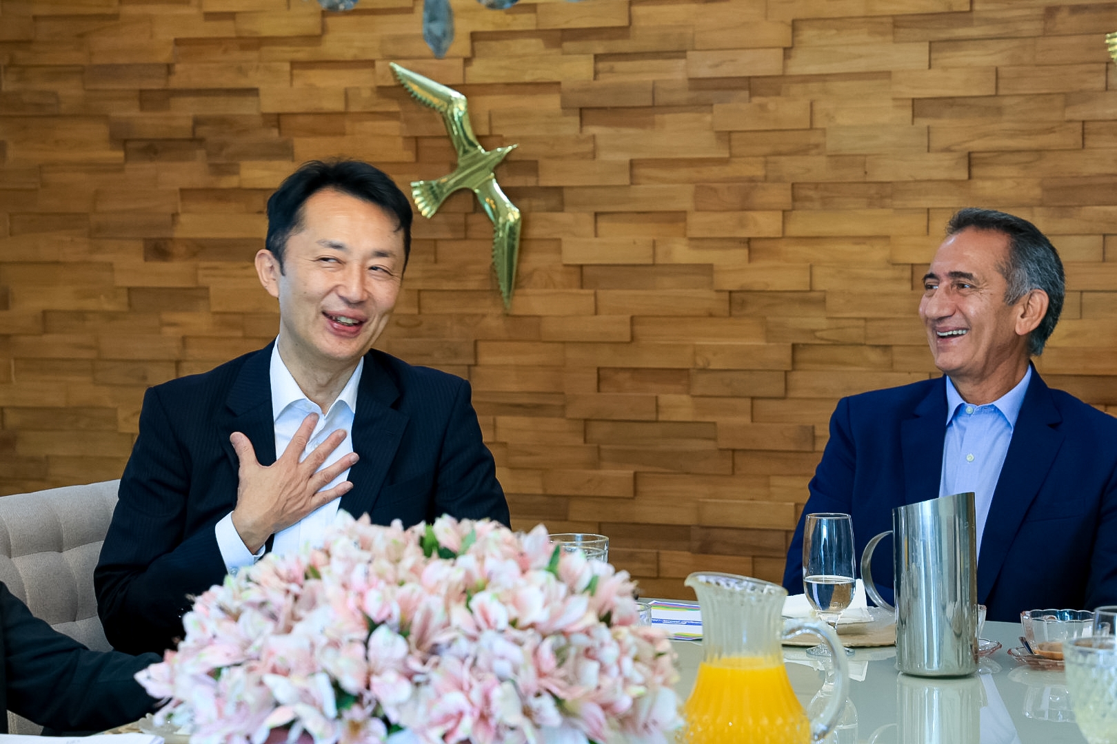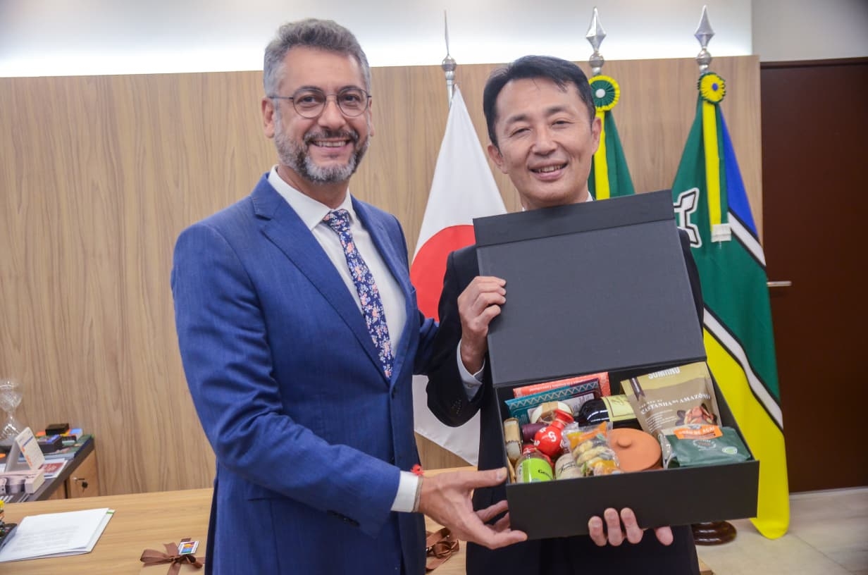 Em seguida, realizou um encontro com o Governador do Estado do Amapá, Sr. Clécio Vieira, no Palácio do Setentrião, sede do Governo do Amapá, onde trataram de temas relacionados à cooperação entre o Japão e o Amapá, à economia do Estado do Amapá e à relação com os imigrantes nipo-brasileiros.
