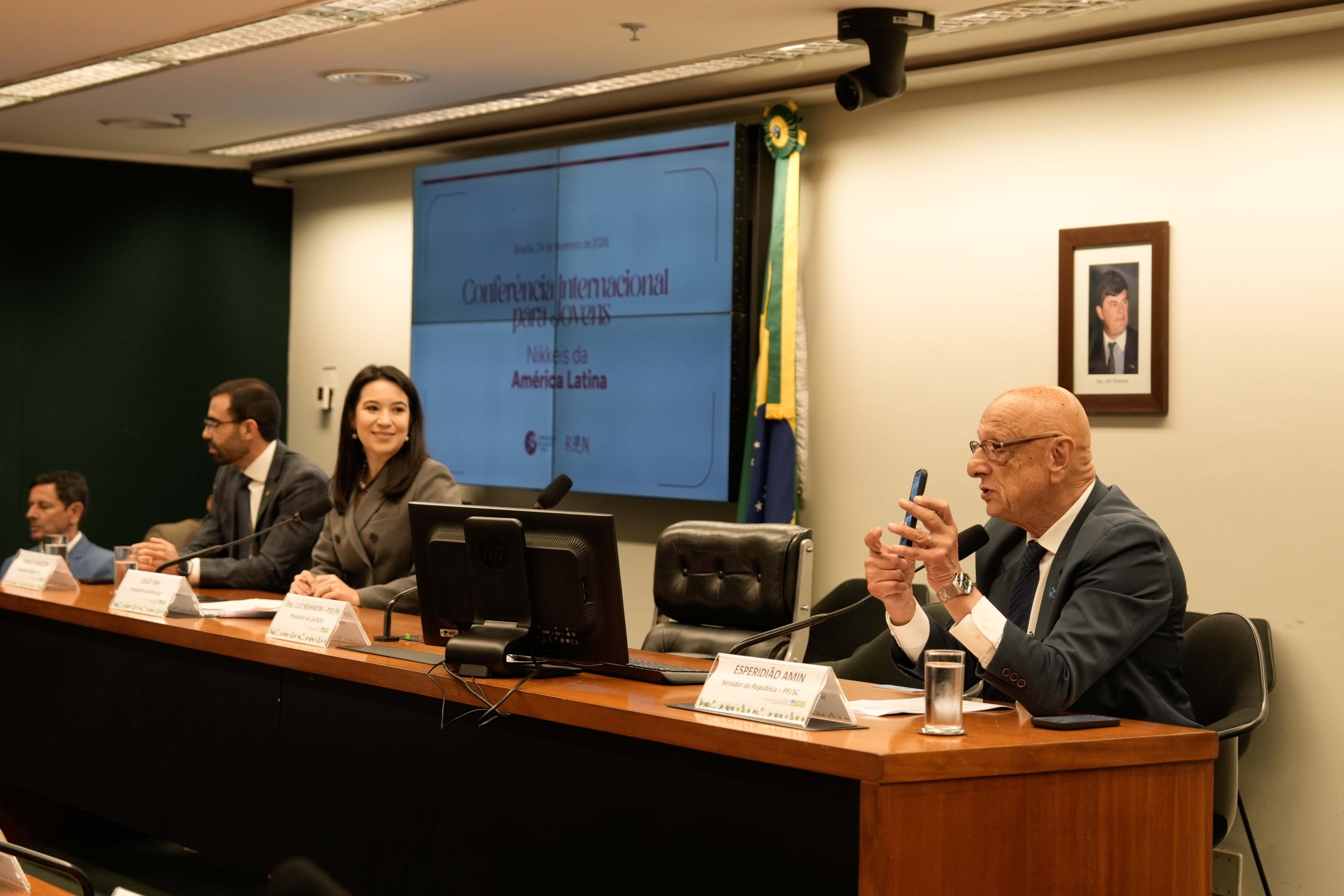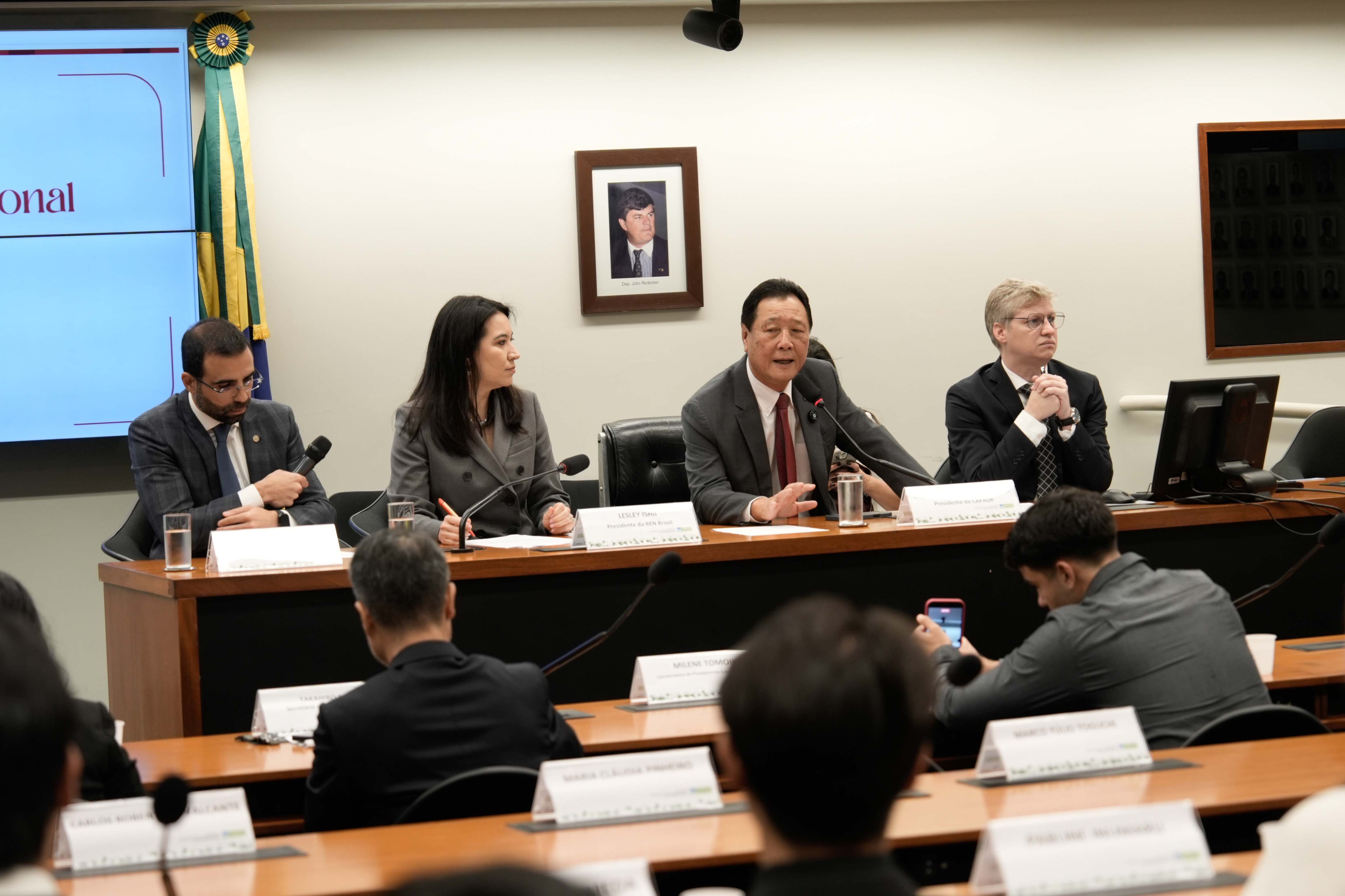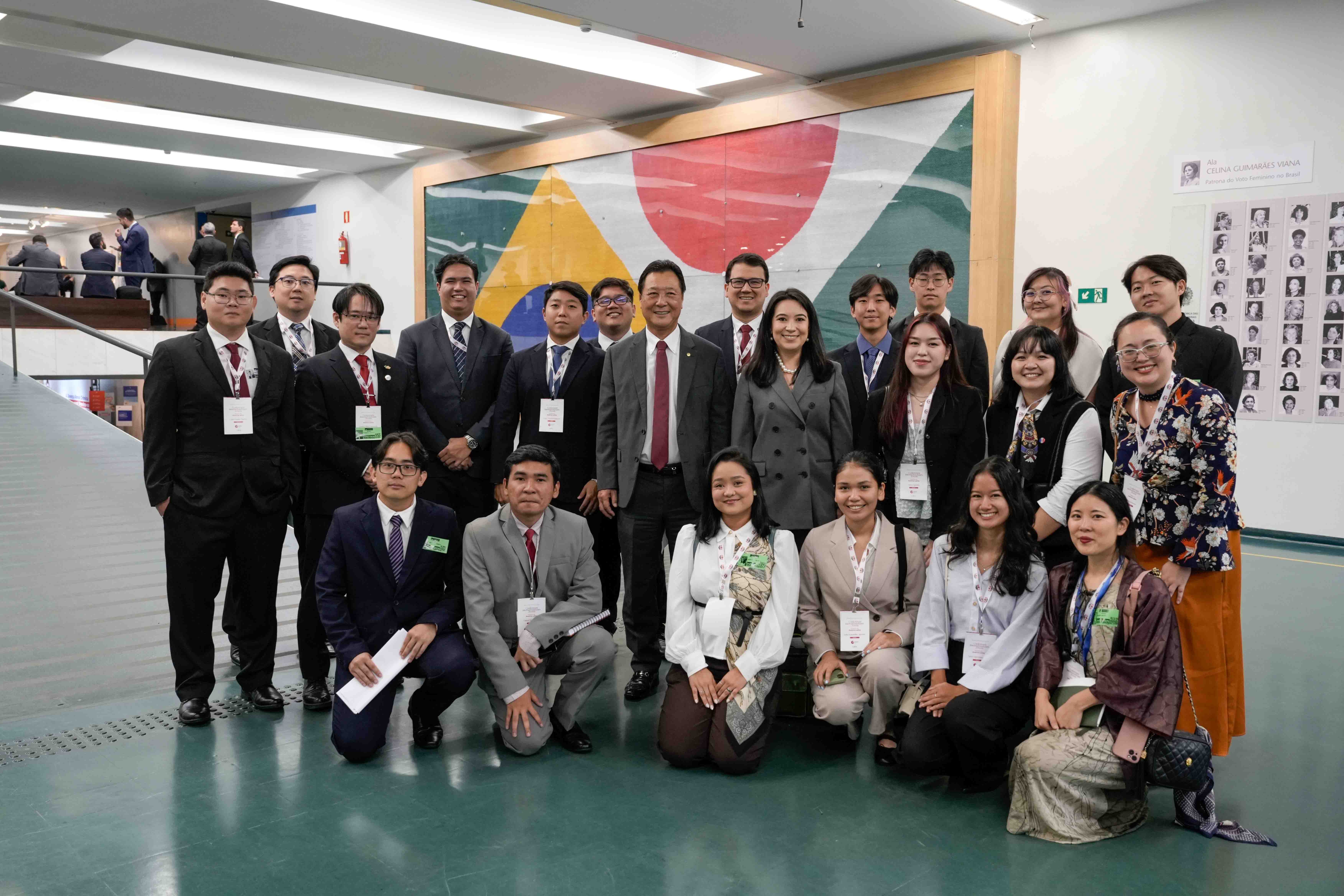 A delegação da REN, composta por representantes das filiais regionais da REN Brasil em todo o país, juntamente com participantes da Argentina, Colômbia, Paraguai e Bolívia, visitou o Congresso Federal Brasileiro e se reuniu com parlamentares ligados ao Japão antes de participar da conferência.