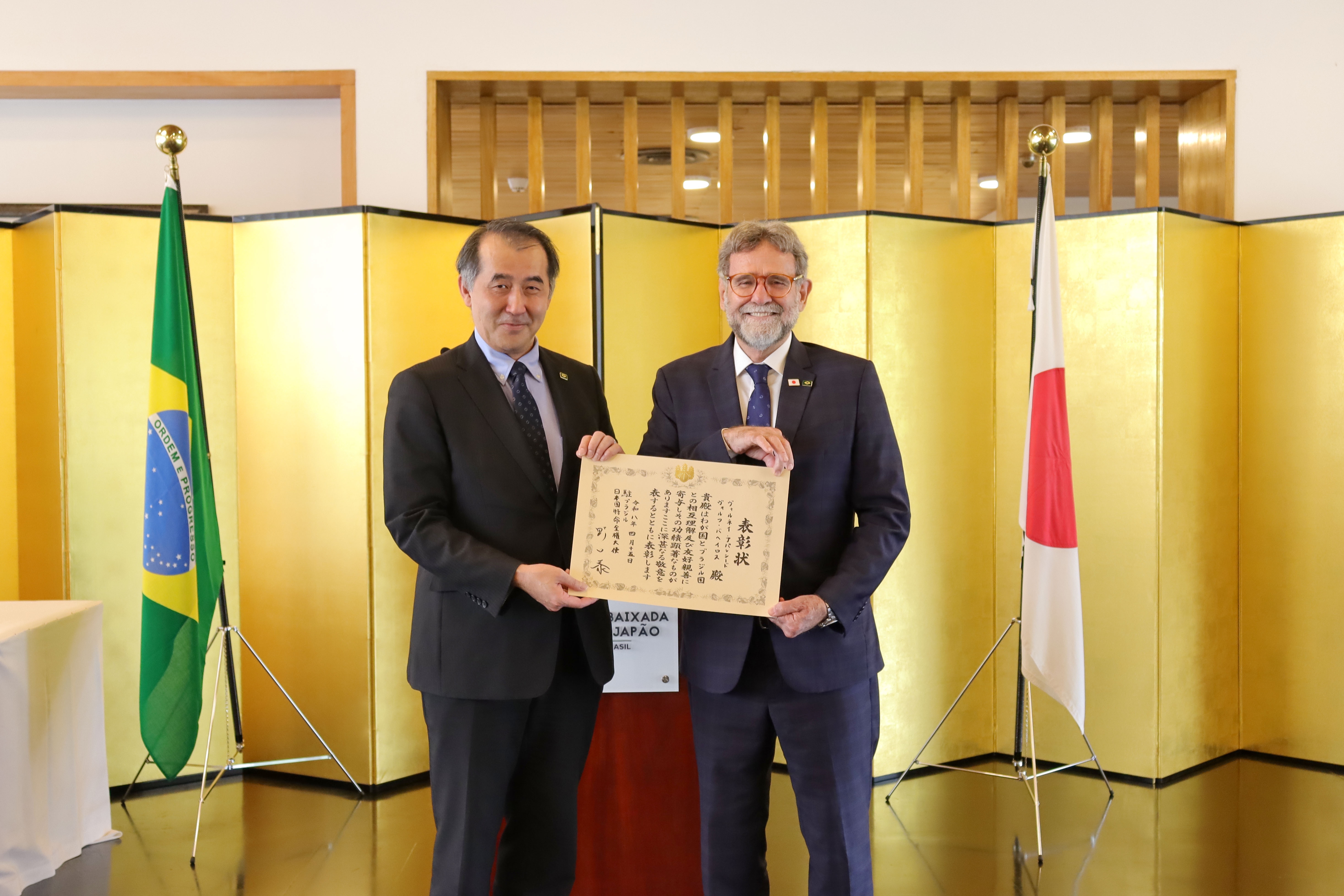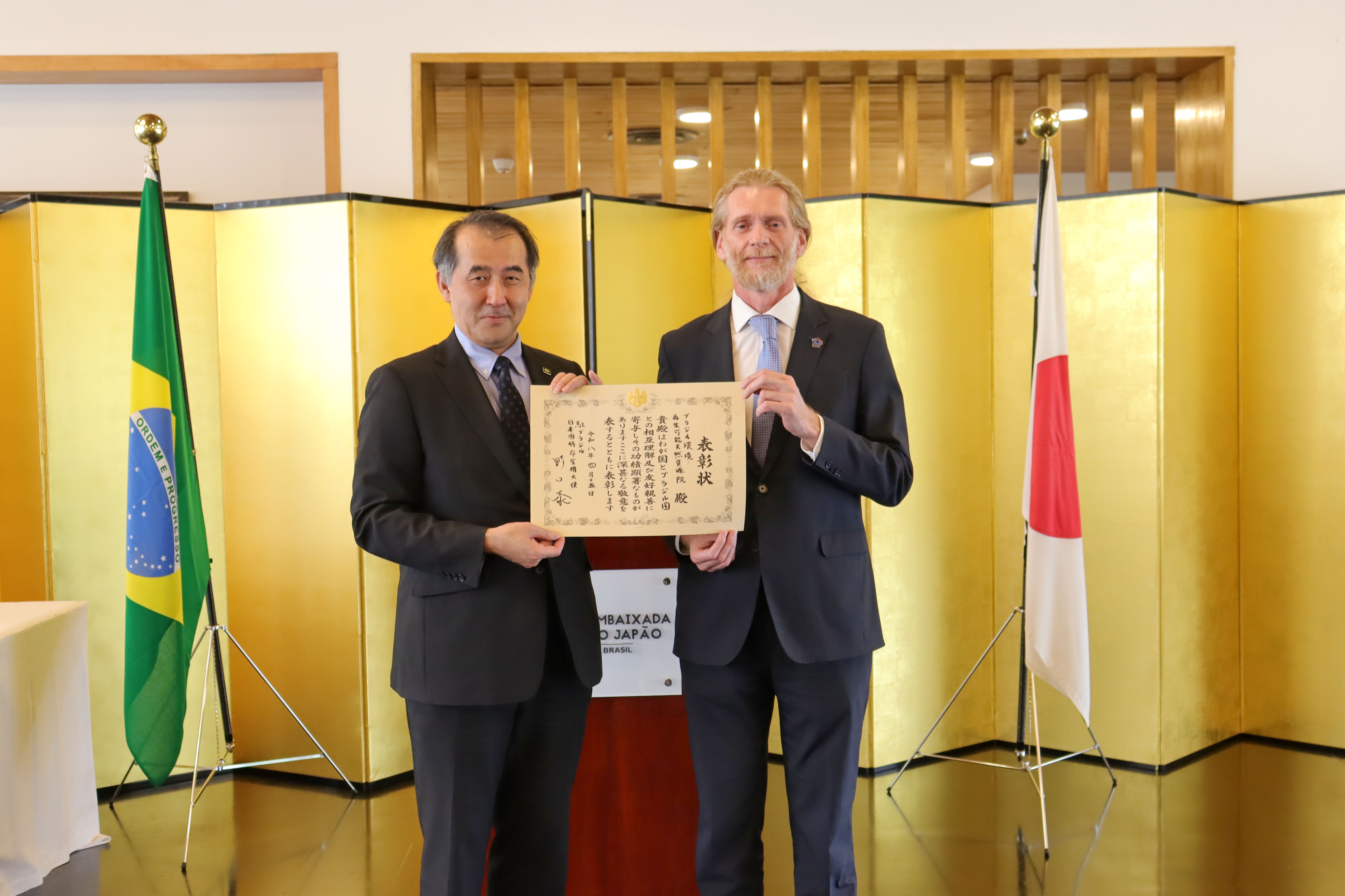 Em 15 de abril, na residência oficial do Embaixador do Japão no Brasil, o Embaixador Noguchi outorgou os Diplomas de Honra ao Mérito do Embaixador do Japão no Brasil no ano 8 da Era Reiwa (2026) a uma pessoa e uma entidade, em reconhecimento às notáveis contribuições para a construção da cooperação entre o Japão e o Brasil.